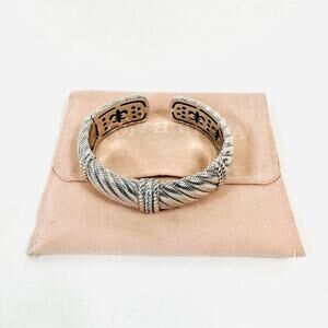 Judith Ripka Diamonique Rope Cuff Bracelet 925 Silver Cubic Zirconia Hinged Cuff Bracelet
