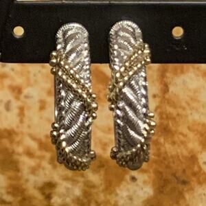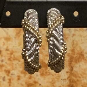 Judith Ripka Earrings Sterling Silve w/ Gold Twist Hoops Omega Backs