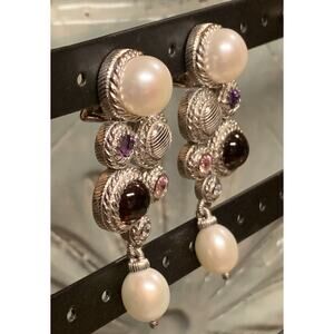 Judith Ripka Earrings Sterling Silver, Cultured Pearls & Gemstones Dangle/Drop