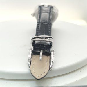 brand new never been worn Ladies Judith Ripka Sterling Silver Watch with Mother of Pearl Dial, Blue Sapphire Crown and Black Genuine Crocodile Leather Strap. Swiss Made Quartz Movement.