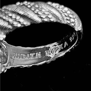 Judith Ripka Green Intaglio ring. Embellished with sparkling side stones and detailed band. Unique and in very good condition.