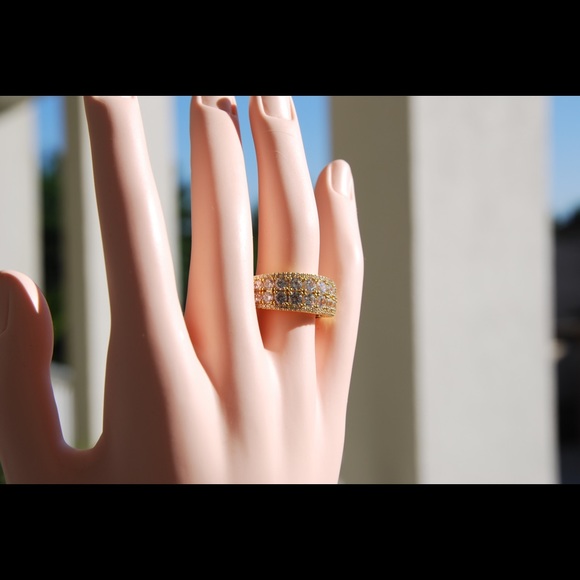 Beautiful Canary CZ-studded ring. Size 10 with removable size 8 adjuster (as pictured).