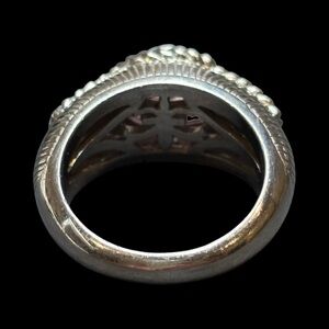 This beauty sits at a size 8. Classic quality and gorgeous Judith Ripka design.