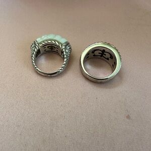 Bold silver rings with white accents. Unique textures and elegant design. Perfect for adding sophistication.