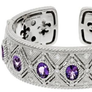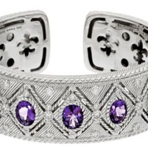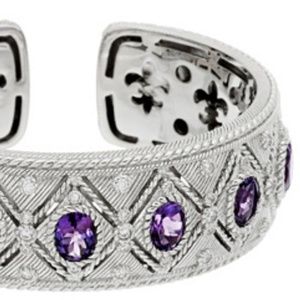 From Judith Ripka Sterling Bezel Set Amethyst & Diamonique Cuff in size Small