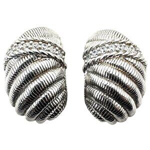 Elegant sterling silver earrings by Judith Ripka, featuring sparkling cubic zirconia stones. Perfect for adding a touch of luxury to any outfit, these earrings are designed with a secure lever back closure for pierced ears. Ideal for special occasions or everyday wear.