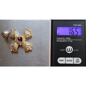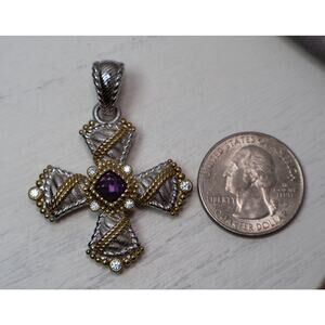 Judith Ripka Sterling Silver Cz & Amethyst Pendant 16.5G / 1.8in . Condition is Pre-owned - Excellent. Shipped with USPS Ground Advantage.
