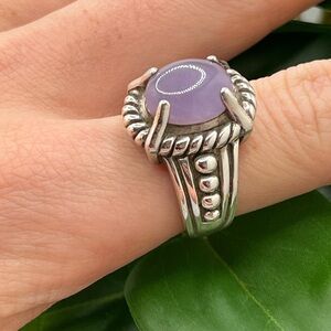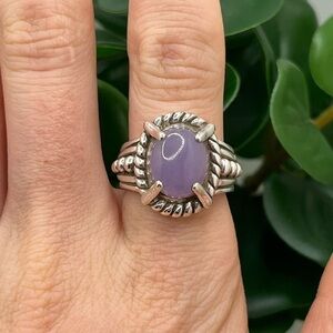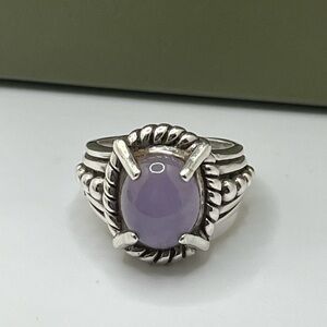 A pretty, gorgeous authentic Judith Ripka Sterling silver 925 natural oval-cut Lavender purple jade stone ring