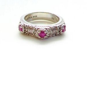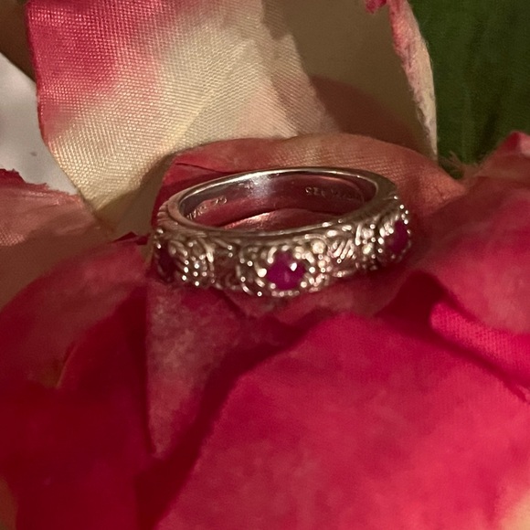 Judith Ripka 925 sterling Silver Triple Ruby cubic zirconia Ring size 7 pre owned in good condition ( no original box)