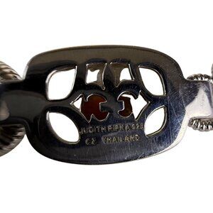 This exquisite Judith Ripka 6.5-inch bracelet is a refined blend of craftsmanship and timeless elegance. Made in Thailand, it features intricately carved carnelian stones set in a lustrous silver tone. A hallmark of Judith Ripka's signature aesthetic, this bracelet showcases a luxurious scroll and beadwork design complemented by sturdy link chains. The secure toggle clasp adds both style and function, ensuring ease of wear. The reverse side displays the “Judith Ripka 925 CZ Thailand” insignia, highlighting the genuine sterling silver base adorned with cubic zirconia detailing. Carnelian’s deep, warm hues create a stunning contrast against the polished silver tone. Ideal for pairing with vintage or classic ensembles, this bracelet embodies both modern sensibility and traditional charm. Whether for a jewelry aficionado or an everyday style statement, this piece is sure to impress with its intricate detailing and rich materials.