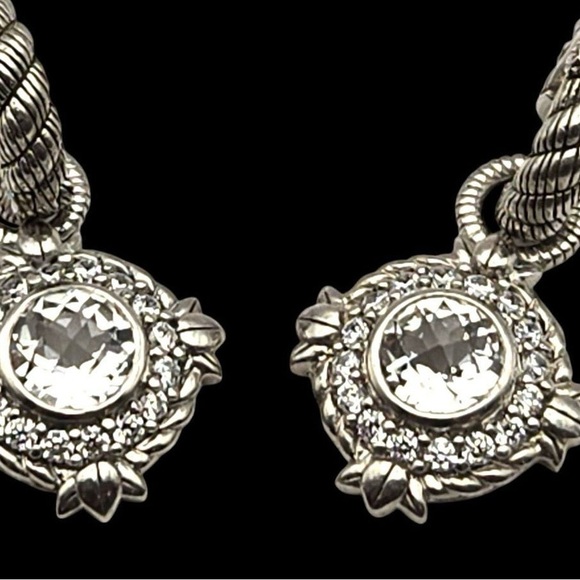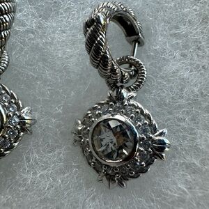 Judith Ripka earrings Silver halo charm drop Sterling silver