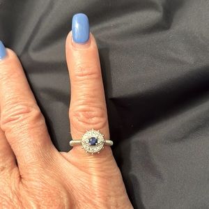 Neiman Marcus Judith Ripka 🪬 evil eye ring size 6 “SYN BLUE SAPPHIRE &WHITE TOPAZ STERLING SILVER THAILAND”