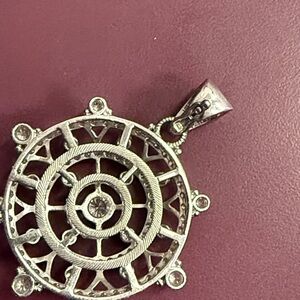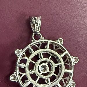 This stunning silver pendant features intricate crystal detailing, perfect for adding a touch of elegance to any outfit.
