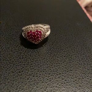 Judith Ripka pave ruby heart ring. Sterling silver size 6