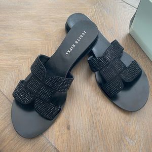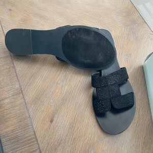 A very beautiful and comfortable pair of black embellished Judith Ripka slippers that you’d wear when you’re feeling a little sexy😊❤️❤️❤️