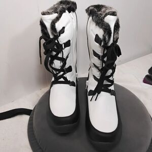 White nylon top mid calf with black rubber soles size 9M Lace up Gently used