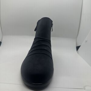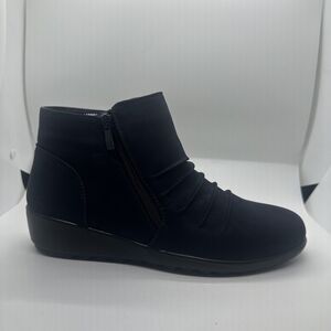 These Judith women's booties are a size 10 in navy blue. They feature a stylish ruched design and a comfortable wedge heel. The boots are categorized under women's shoes and are perfect for adding a chic touch to any outfit.