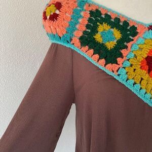 Judith March Boho Pheasant Crochet Top Shirt SZ S