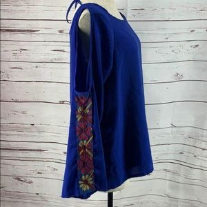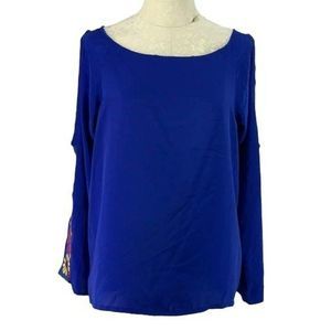 Judith March Woman's Royal Blue Cold Shoulder Boho Scoop Neck Blouse Size Large