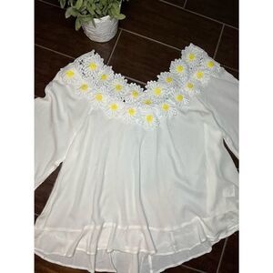 Judith March oversized low shoulder daisy top sz small