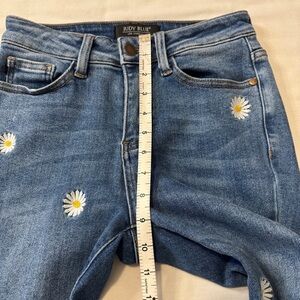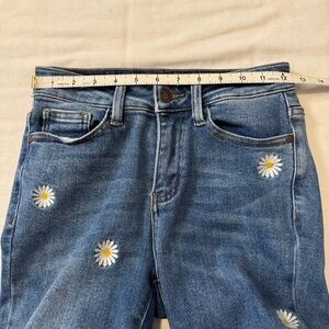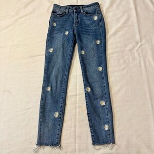 Judy Blue 1 / 25 Skinny Fit Daisy Embroidered JEANS Mid Rise Raw Hem ~ Boho Y2K