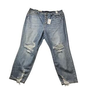 Judy Blue 24W High Waist Boyfriend Jeans NWT Distressed Plus Size Light Wash
