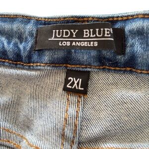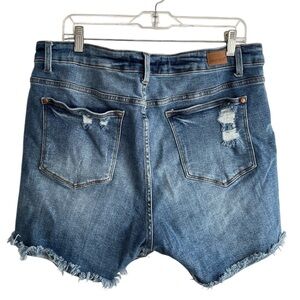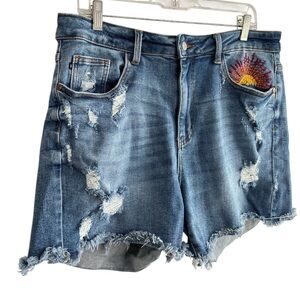 Judy Blue 2XL Jean Shorts Sun Embroidered Raw Hem Stretch High Waist Distressed