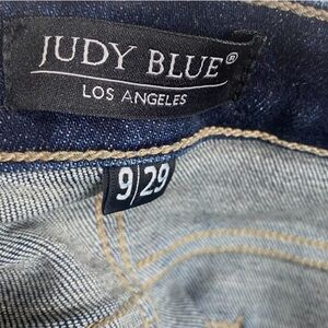 Judy Blue 9/29 Relaxed Cropped Fit Dark Wash Distressed Mid Rise Jeans