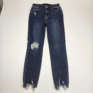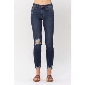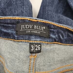 Judy Blue Ankle Relaxed Fit Jeans Women's 3/26 Distressed Cropped Hem Denim Blue