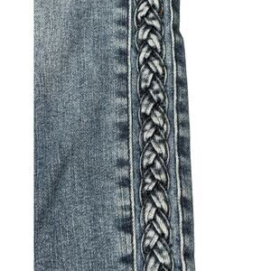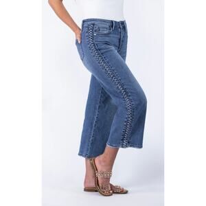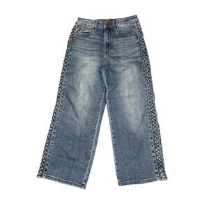 Judy Blue Aurora Wide Leg Crop Jeans Braid Detail Women's 7/28 Blue Relaxed