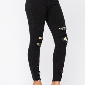 Judy Blue Black Destroyed Leopard Patch Jeans