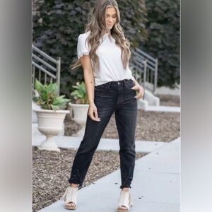 Judy Blue Black Distressed Cropped Straight Leg Stretch Denim Women’s 31