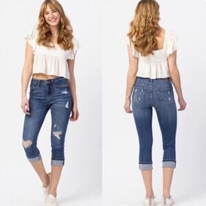 Judy Blue High Waist Distressed Stretch Capri Fit Comfort Stretch Denim Jeans