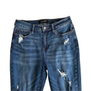 Judy Blue Blue Wash Distressed High Rise Capri Fit Denim Jeans Size 28 JB88221