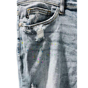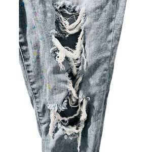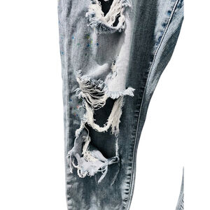 Judy Blue Boyfriend Distressed Paint Speckled Denim Blue Jeans Size 32 Cotton