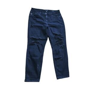 Judy Blue Boyfriend Fit Black Distressed Denim Jeans Size 31 Edgy Grunge Fall