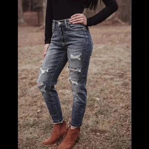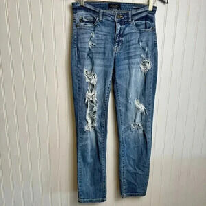Judy Blue Boyfriend Fit Distressed Jeans Size 5/27 Medium Wash Inseam 28" In good condition from non smoking home