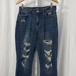 Judy Blue Boyfriend Fit Distressed Jeans Women’s 27 Stretch Raw Hem 5/27