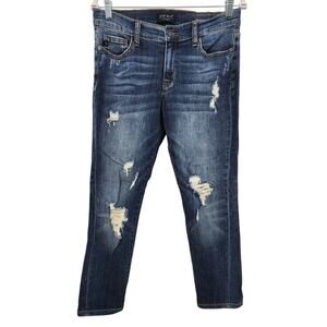 Judy Blue Boyfriend Fit Jeans 7/28 Destroyed Straight Cut Dark Wash