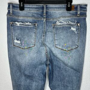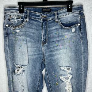 Judy Blue Boyfriend Fit Light Blue Wash Distressed Paint Speckle Jeans Sz 15/32