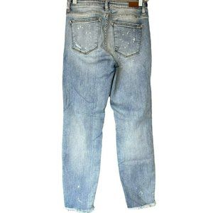 Judy Blue Boyfriend Fit Light Wash Distressed Raw Hem Ankle Jeans Womens 1 / 25