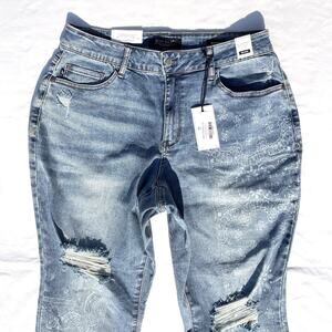 Judy Blue Boyfriend Jeans Mid Rise Destroy & Paisley Womens 14W Distressed