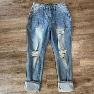 Judy Blue Boyfriend Patch Pocket & Destroy Jeans Size 14w High Rise Distressed