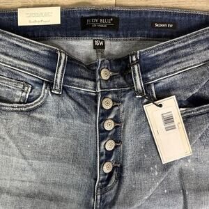 Judy Blue Button Fly Distressed Splatter Skinny Fit Jeans Medium Wash sz 16W