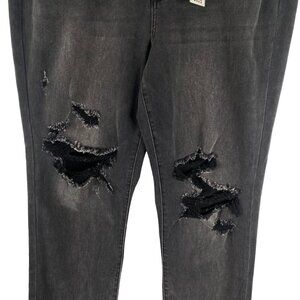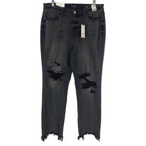 Judy Blue Can't Sit Still Shark Bite Jeans Size 32 Black Distressed Boyfriend Fit High Waist NWT PT-2126
