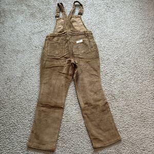These high-waist camel corduroy overalls offer a unique and stylish take on a classic overall design. With a straight-leg cut and an overdyed finish, they exude a timeless charm with a modern twist.