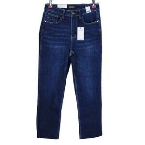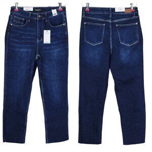 Judy Blue Cropped Straight Jeans Size 28 Raw Frayed Hem High Dark Side Slits New