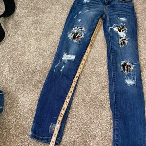 Judy Blue DARK WASH LEOPARD PATCH DENIM SKINNY JEAN PANTS SZ 25" - 1