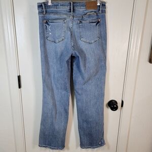 Meet your new favorite pair of jeans: these Judy Blue Dad Jeans in size 9/29 blend relaxed, vintage vibes with modern comfort. Featuring a high-rise waist, laid-back straight leg fit, light distressing, and an unexpected extra back pocket, this pair stands out in the best way.