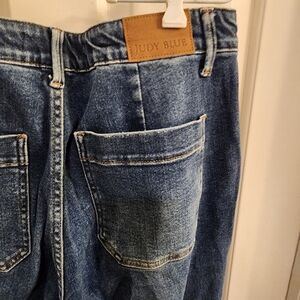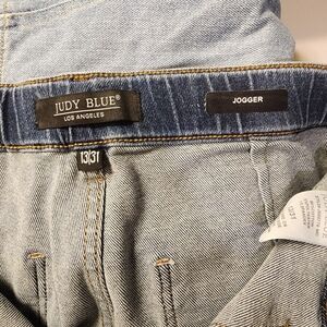 Stylish dark blue jeans with drawstring waist. Comfortable fit. Perfect for casual wear.